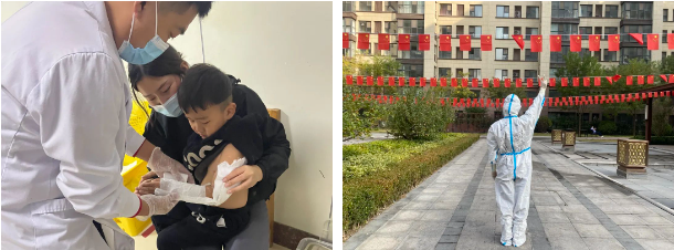 貼心管家王圓圓四歲的女兒正好這天過生日,一早就來到園區(qū)的她只能在工作間隙通過視頻給女兒唱生日歌。不僅如此,她的家里還有一個(gè)十個(gè)月大的孩子。貼心管家管丹丹和禮兵王連營(yíng)因和醫(yī)護(hù)人員一同上門為確診病例進(jìn)行核酸檢測(cè),而不得不被集中隔離。管丹丹的兩個(gè)孩子獨(dú)自在家,最大的才只有十二歲;而王連營(yíng)家中還有生病的妻子和年幼的孩子等待照顧。貼心管家劉娜平因兒子骨折,深夜去醫(yī)院處理,回家后不久就接到了小區(qū)核酸異常的消息,便毅然決然地返回工作崗位。